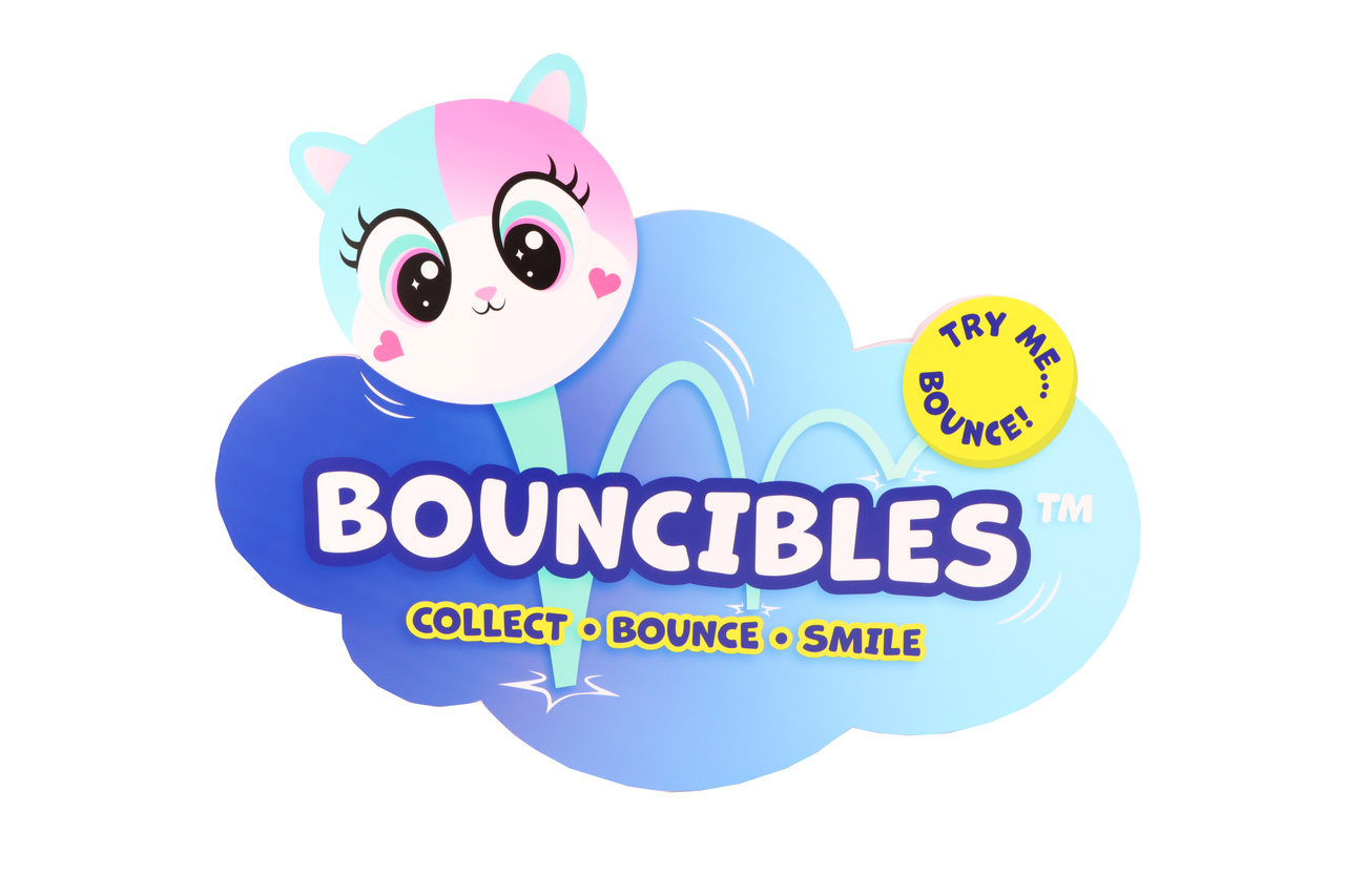 Dubbelsidig toppskylt Bouncibles.Bredd 560mm, Höjd 440mm, Djup 20mm.