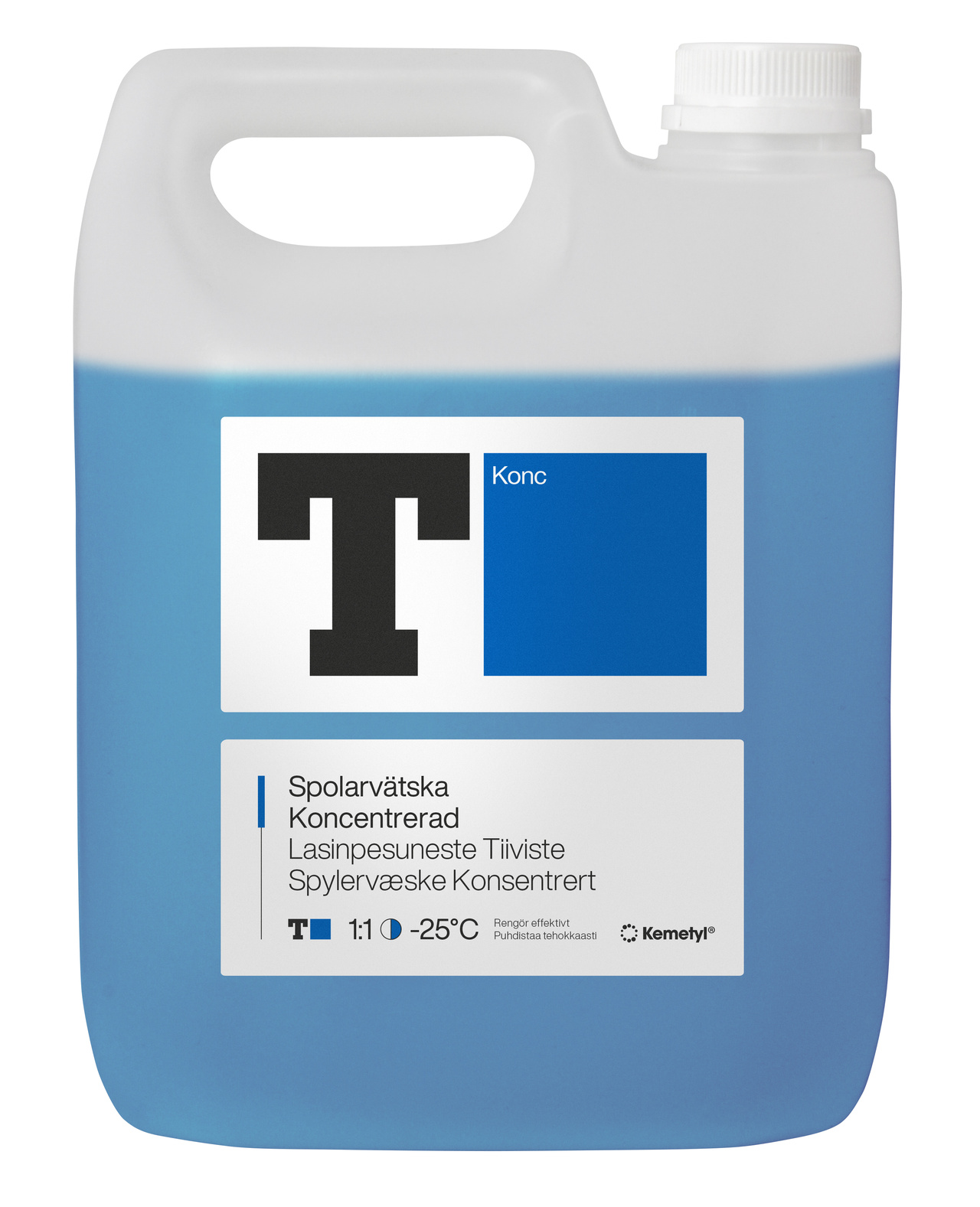 Kemetyl T-Blå spolarvätska rengör effektivt bilens vindruta, strålkastare och speglar från vägsalt, trafikfilm och andra smutspartiklar. Frysskydd 1:1 -25C.Specifikation