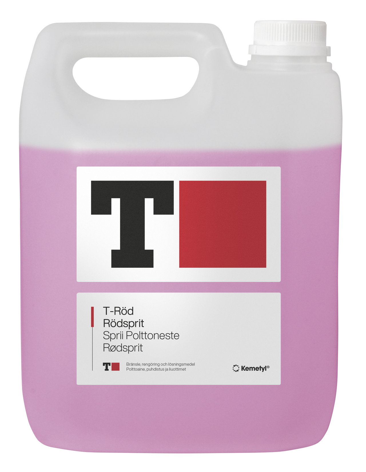 T-Röd kan användas som rengöringsmedel till fönster, kakel och plastgolv m.m. T-Röd kan också användas som lösningsmedel för vissa färger och fläckar som t.ex. kulspetsfärg. Den kan även användas som frostskyddsmedel för VVS-system och bilens spolarvätskesystem. Vätskan är också användbar som spritbränsle till spritkök, spritlampor, fonduegrytor. Blandas med vatten efter behov.VARNING! Tänd aldrig grillar eller brasor med rödsprit, använd tändvätska istället.