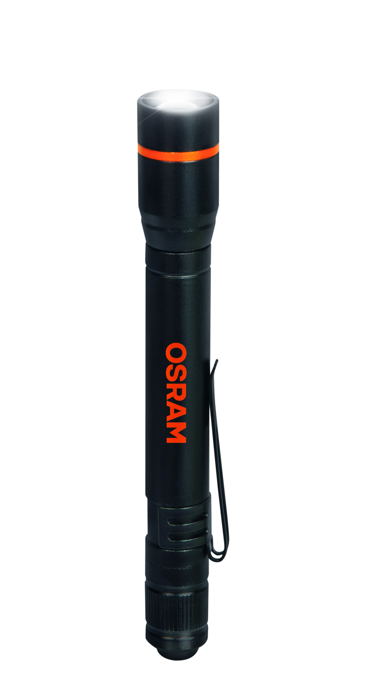 OSRAM LEDinspectT TORCH 250 ESSENTIAL är en mångsidig och hållbar LED-ficklampa som är utformad för både professionell och daglig användning. LED-ficklampan har 250 lumen och tre olika ljuslägen som enkelt kan ändras genom att vrida på lamphuvudet. Den drivs av 2x AAA-batterier och ger upp till 2 timmars drifttid på hög effekt och 6 timmar på låg effekt, vilket gör den till ett viktigt verktyg för verkstäder, garage och när du är på språng.Specifikation